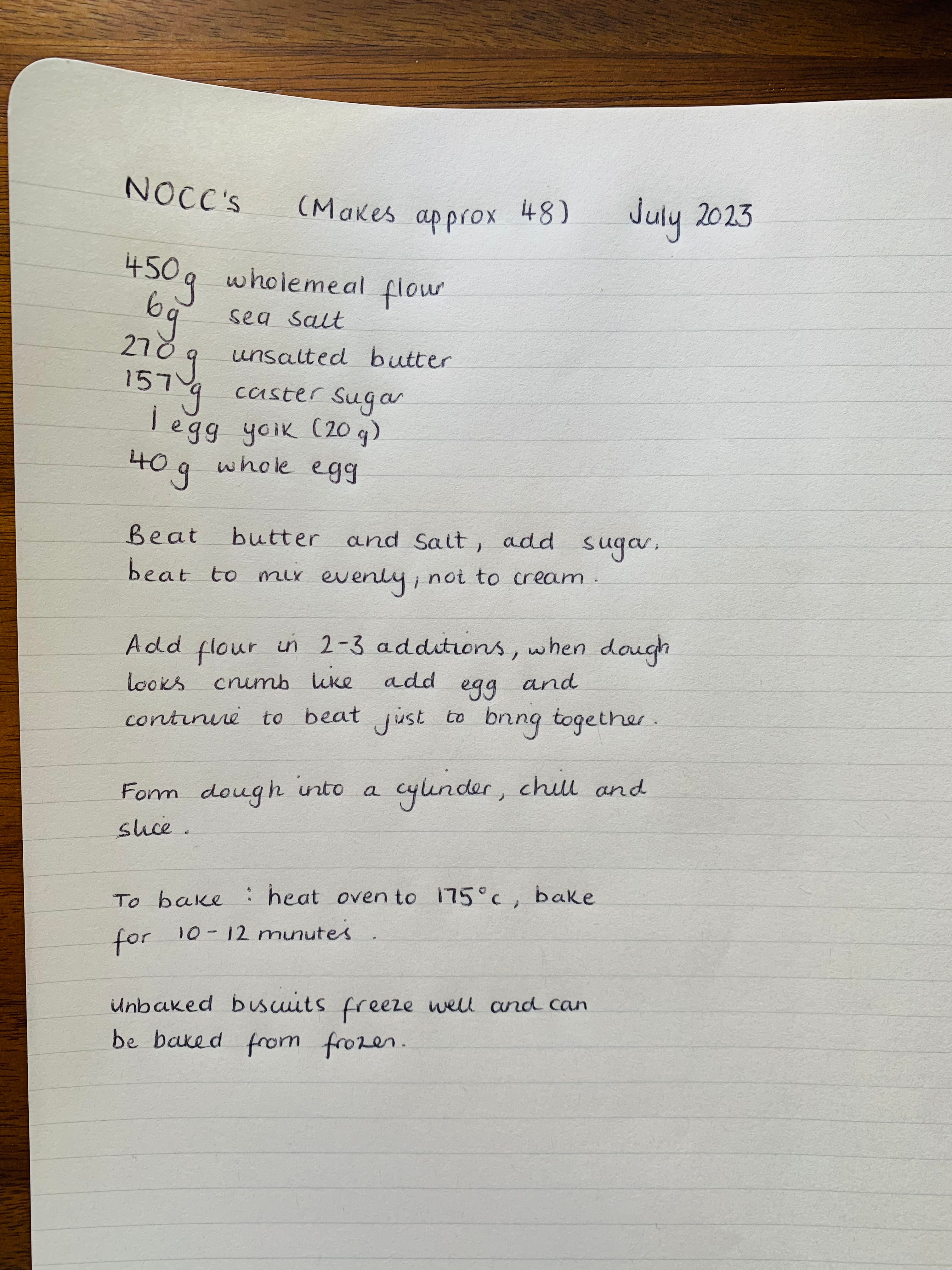 The flours had been milled on Green Acres Farm from wheat grown there by Mark & Liz Lea. They ranged from a landrace wheat (Hen Gymro) and the early modern, long-strawed Maris Widgeon right through to the more modern short-straw varieties of Extase, Nelson and Mayflower, and the most progressive YQ Population wheat. I used a simple sablé biscuit formula to make as identical as possible batches of biscuits with the different flours. Mark milled all flours to be as whole as possible with only the coarsest bran and chaff removed.